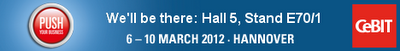1. CeBit 2012: We are glad to inform you that we will participate in CeBit 2012 Hannover( Mar 6-10). You are kindly invited to visit our booth.